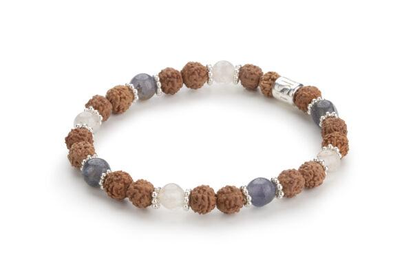 Náramek z Rudrakshi, cordieritu a černého rutilu přirozeně souzní s jeho nositelem jako nádech s výdechem. Hmotný svět začíná nádechem a končí výdechem. Semeno Rudrakshi jakožto modlitební korálek v sobě odráží pozitivní energii a přenáší její působení na nositele šperku. Cordierit usnadňuje projevit vlastní osobnost.