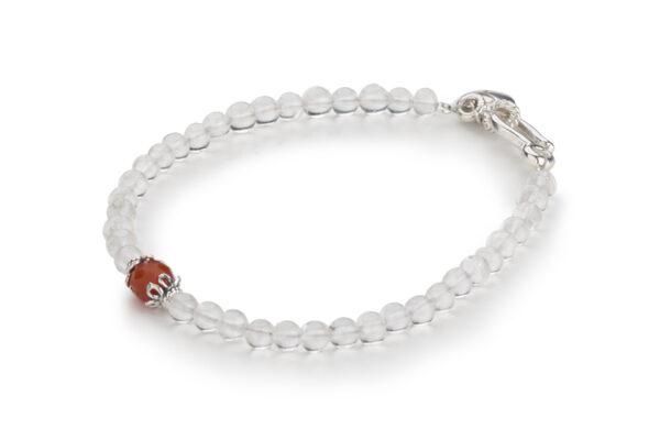 Náramek z křišťálu a karneolu se stříbrným zapínáním zintenzivňuje prožívání. Křišťál působí svou očistnou léčivou energií a karneol je plný životní síly a vitality. Život je třeba prožít.