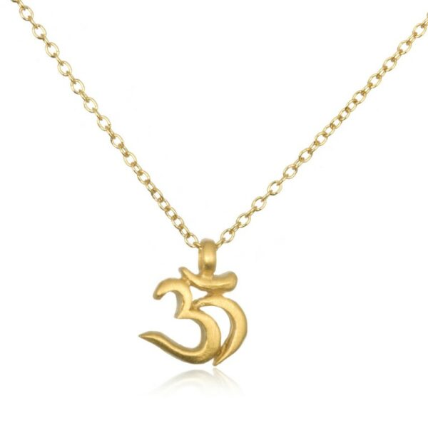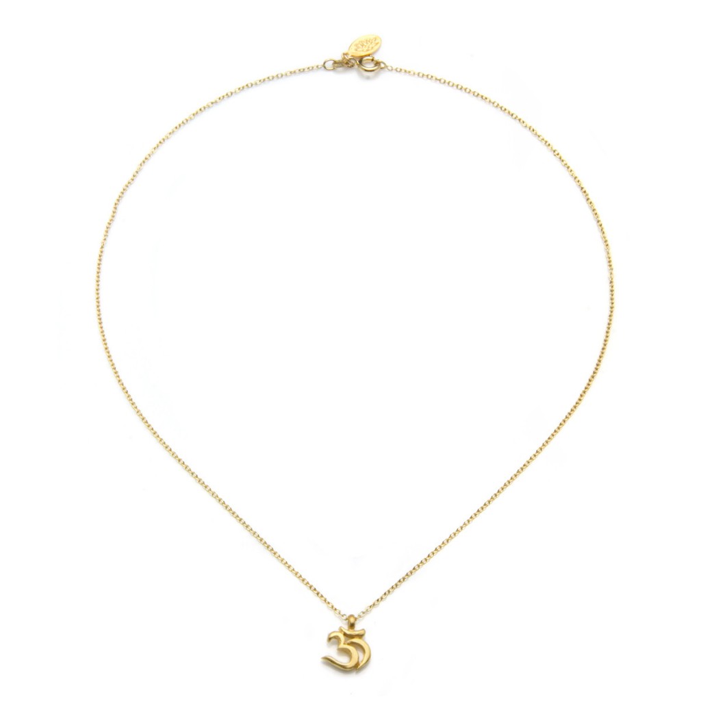 Tento náhrdelník oslavuje krásu písma Sanskrtu, zobrazením znaku Óm. Náhrdelník je jak krásný, tak smyslný a užitečný. Polohovací řetízek umožňuje snadno upravit délku náhrdelníku.