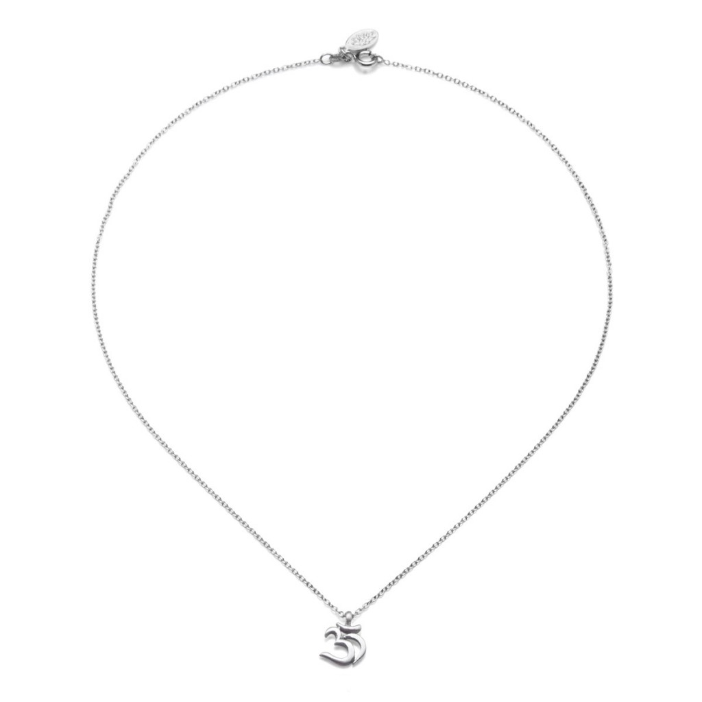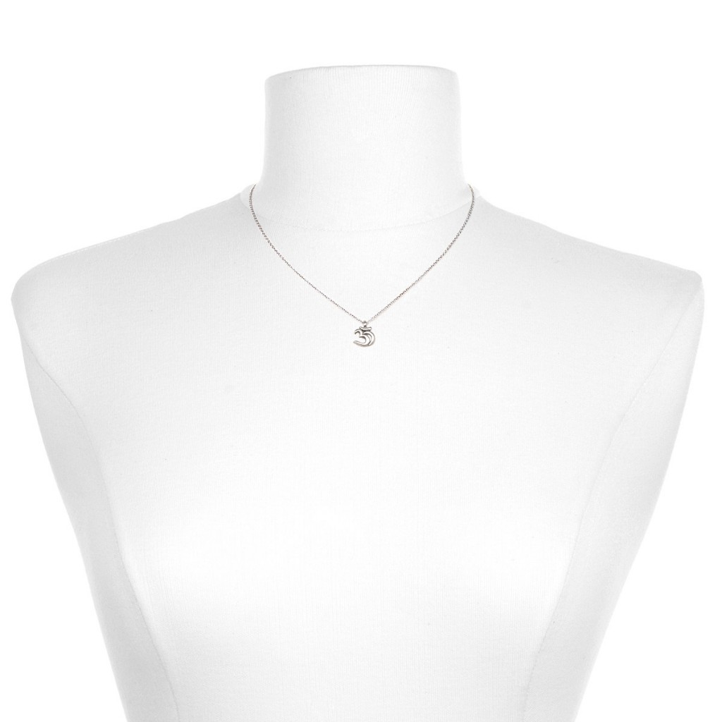 Tento náhrdelník oslavuje krásu písma Sanskrtu, zobrazením znaku Óm. Náhrdelník je jak krásný, tak smyslný a užitečný. Polohovací řetízek umožňuje snadno upravit délku náhrdelníku.