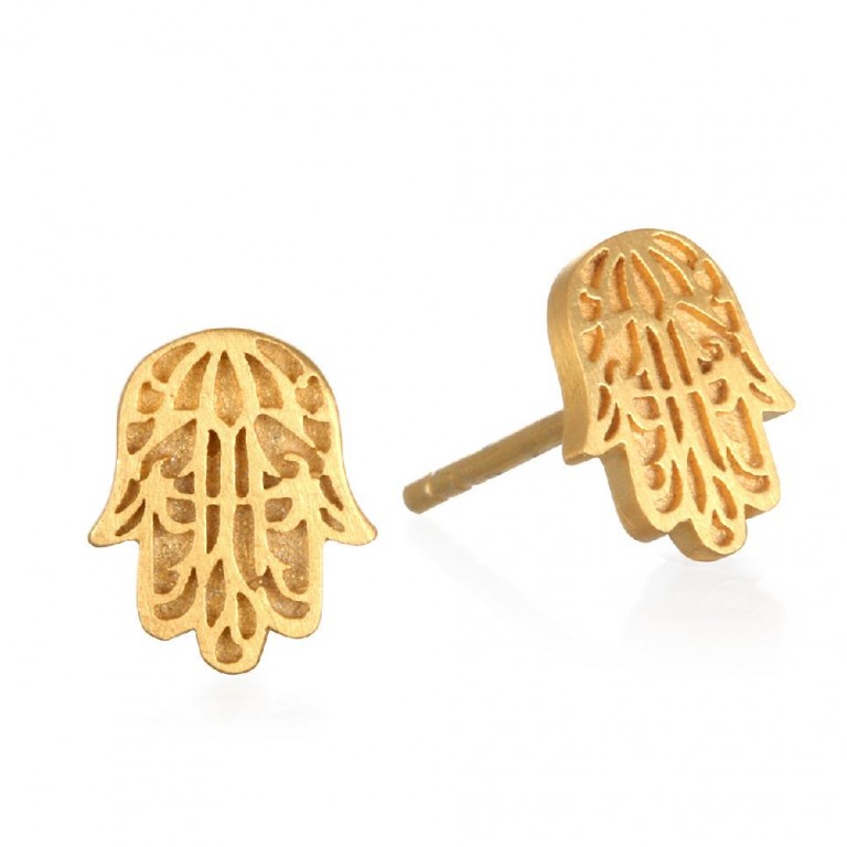 Dvě něžné, pečující ruce – dvě otevřené dlaně, které jsou připraveny přijmout požehnání a pokytnout Vám svou posvátnou ochranu. Elegantní náušnice se symbolem Hamsa ochraňují před negativní energií.