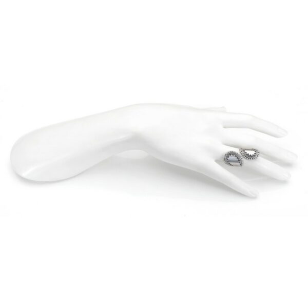Zdobené okraje stříbrného prstenu perfektně podtrhují jeho elegnatní působivou křivku. Prstýnek je velikostně nastavitelný a proto padne úplně každému.