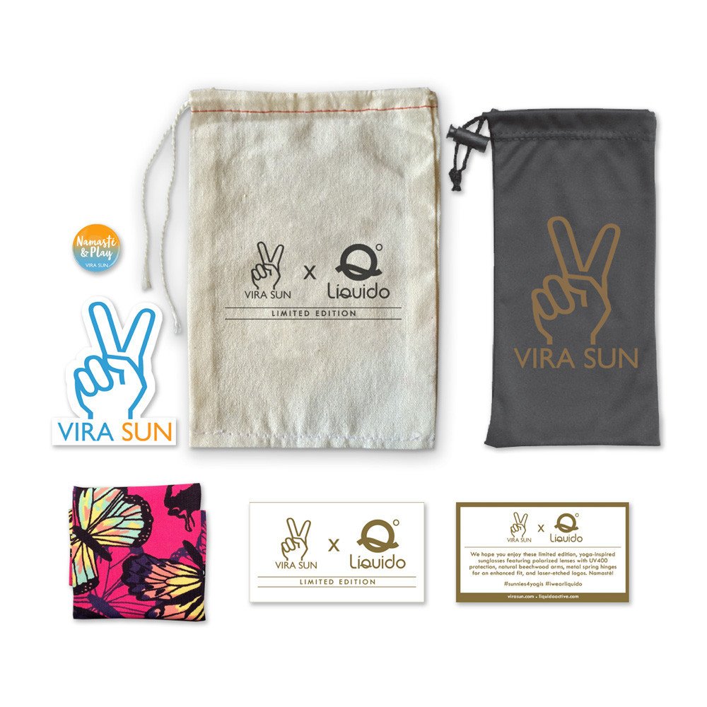 Limitovaná edice vytvořena ve spolupráci s Vira Sun – Unisex design – Polarizované čočky s ochranou UV400 – lehké polykarbonátové obroučky – přírodní bukové dřevo – kovové pružiny pro větší pohodlnost – laserem vyrytá loga z vnitřní i vnější strany – obsahuje ručně tisknutý bavlněný váček na brýle, pouzdro z mikrovlákna, informační brožuru, nálepku, a čistící hadřík, vyrobený z látky na legíny.